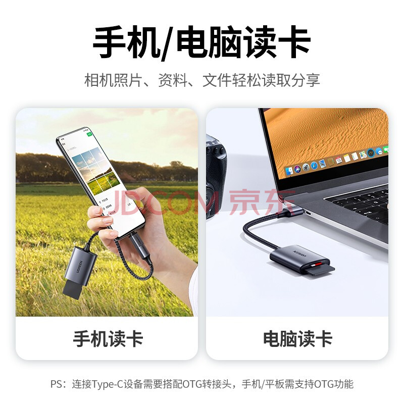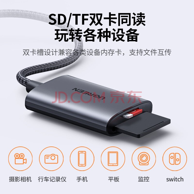 商品相册:绿联USB3.0高速读卡器 SD/TF卡多合一读卡器 支持电脑手机单反相机行车记录仪监控存储内存卡 双卡双读第