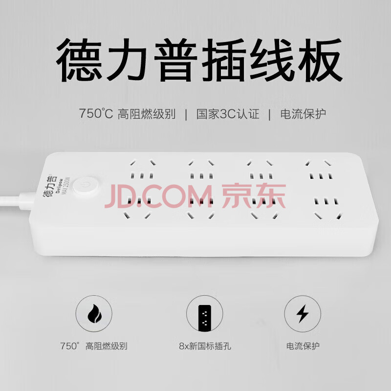 商品相册:德力普(Delipow)新国标插座 插线板/插排/排插/接线板/拖线板 8孔位总控5米第