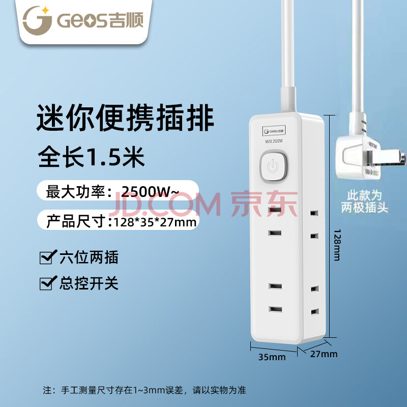 商品相册:吉顺日标国标扩展转换插头一转六插座迷你两脚插座电源转换器 1.5米 6孔位 双脚第