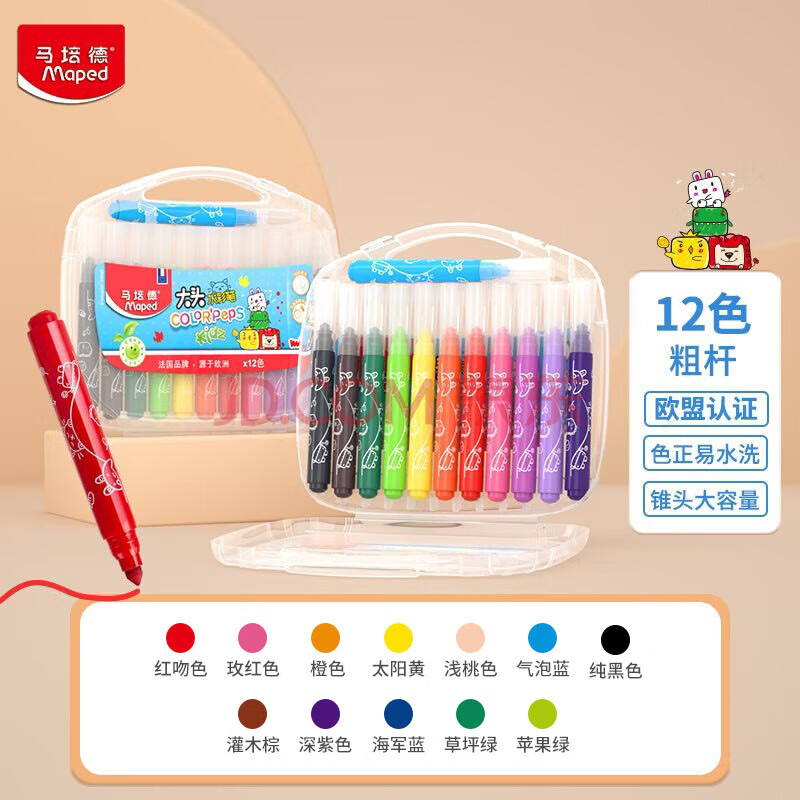 商品相册:马培德(Maped)儿童大头水彩笔 幼儿学生可水洗绘画水彩笔 初学美术彩绘涂鸦画笔 846320CH加粗款【12色/盒】第
