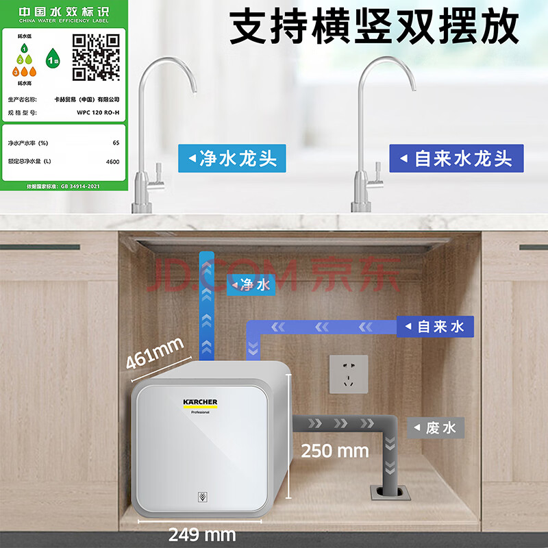 商品相册:KARCHER德国卡赫家用净水器厨下净水机直饮机一体机800G杜邦陶氏RO膜0阻垢剂100%重金属去除率WPC120RO-H第