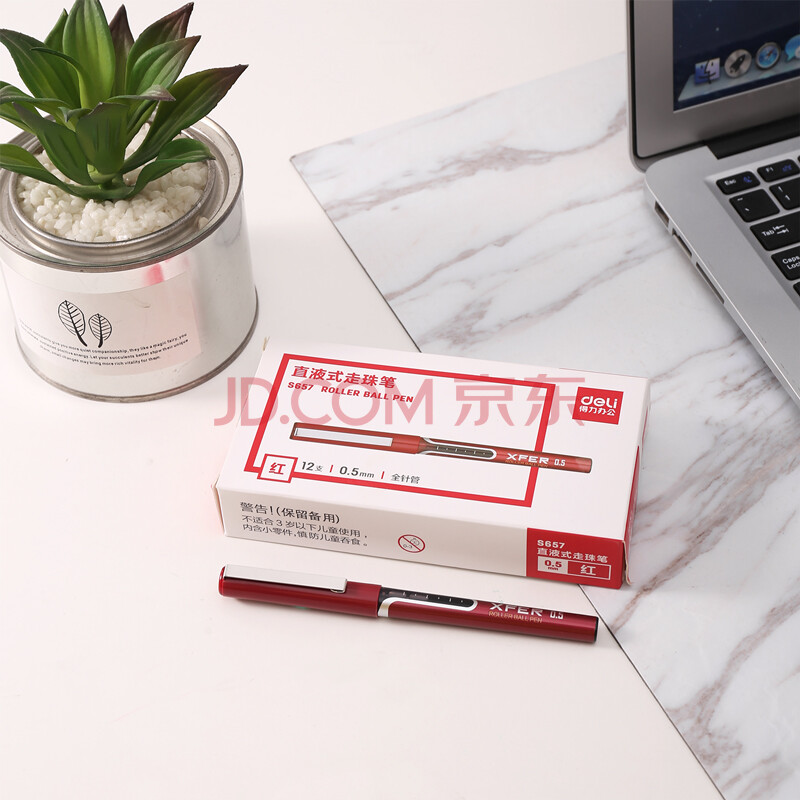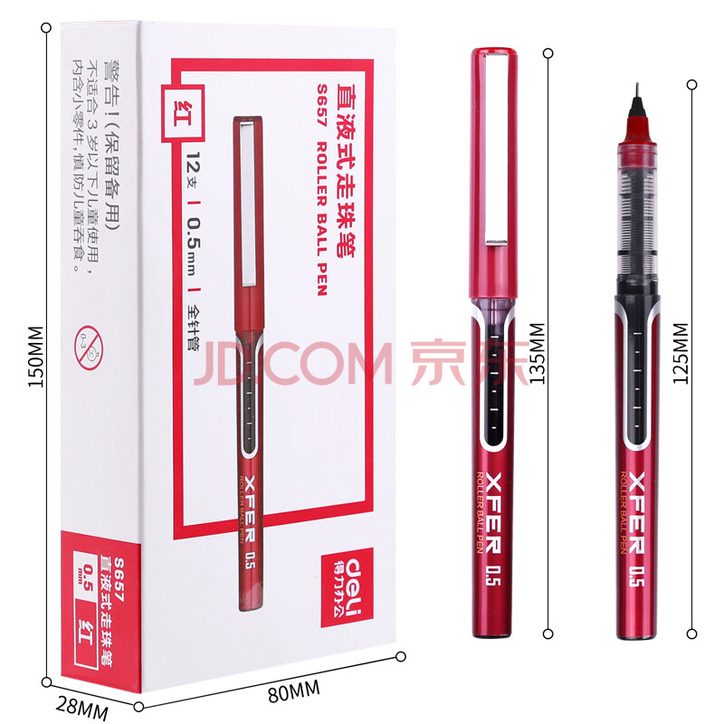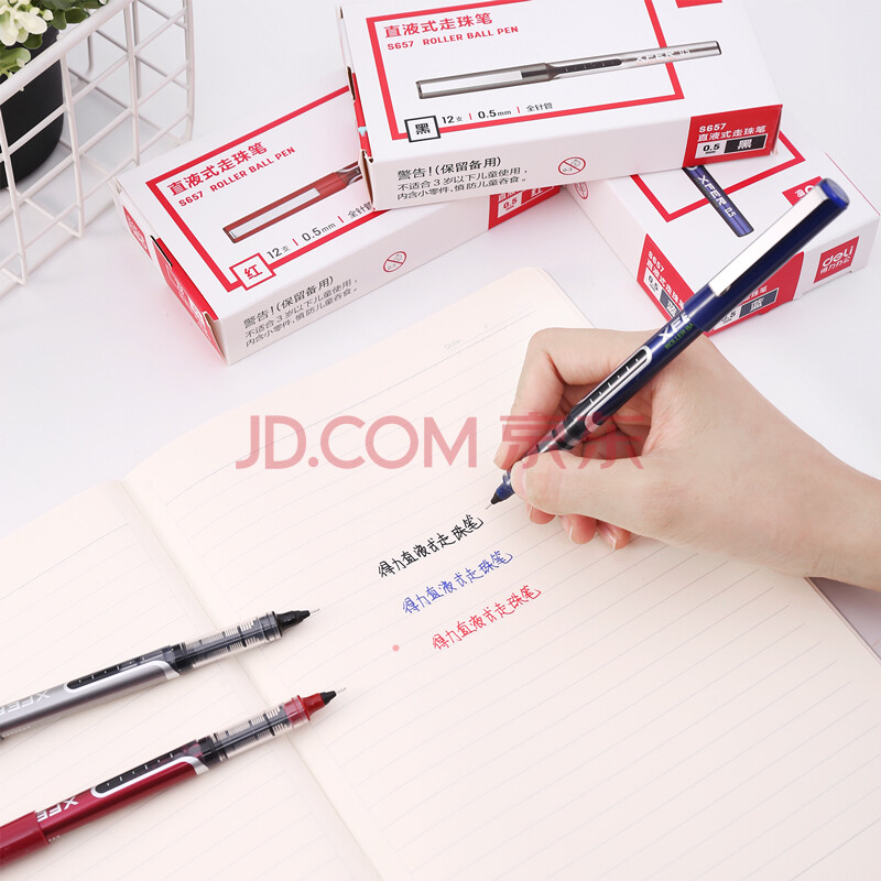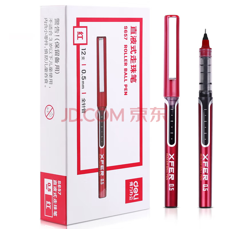商品相册:得力(deli)0.5mm直液全针管走珠签字笔 办公用品学生中性笔会议笔 12支/盒红第