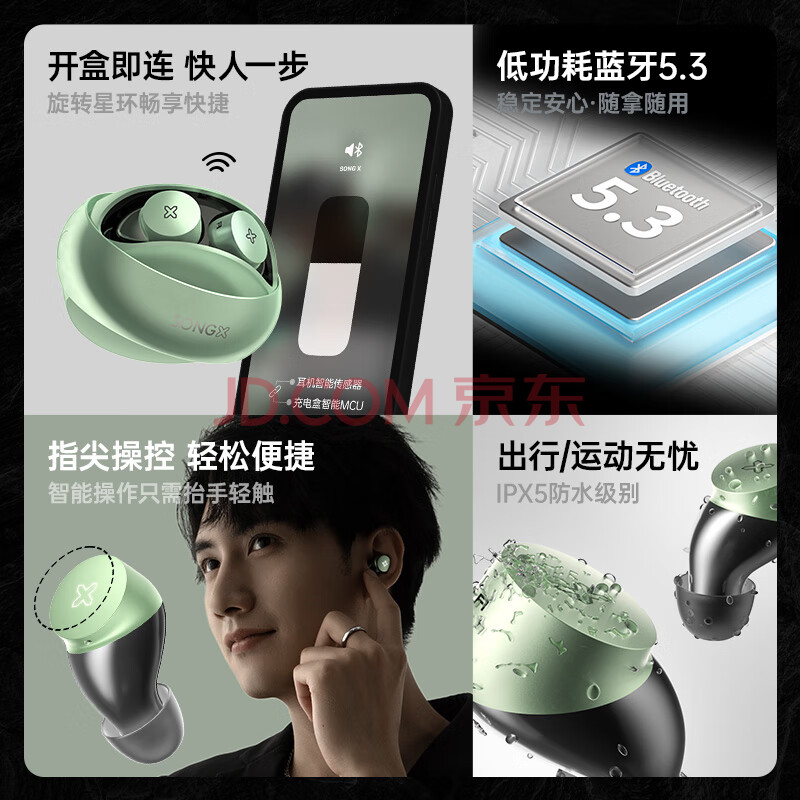 商品相册:SONGX 蓝牙耳机无线入耳式蓝牙5.3降噪耳机运动音乐游戏耳机生日礼物男女苹果华为小米手机适用第