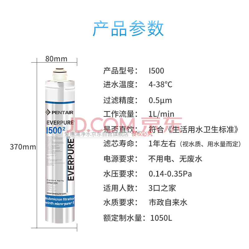 商品相册:爱惠浦(Everpure)家用厨下 餐饮用水过滤器 净水器主滤芯i5002-CN第