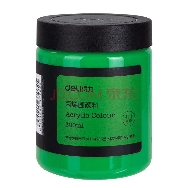 商品相册:得力(deli)草绿丙烯颜料300ml大容量墙绘手绘DIY画画丙烯画大桶装大瓶美术绘画色彩73875美育工具第