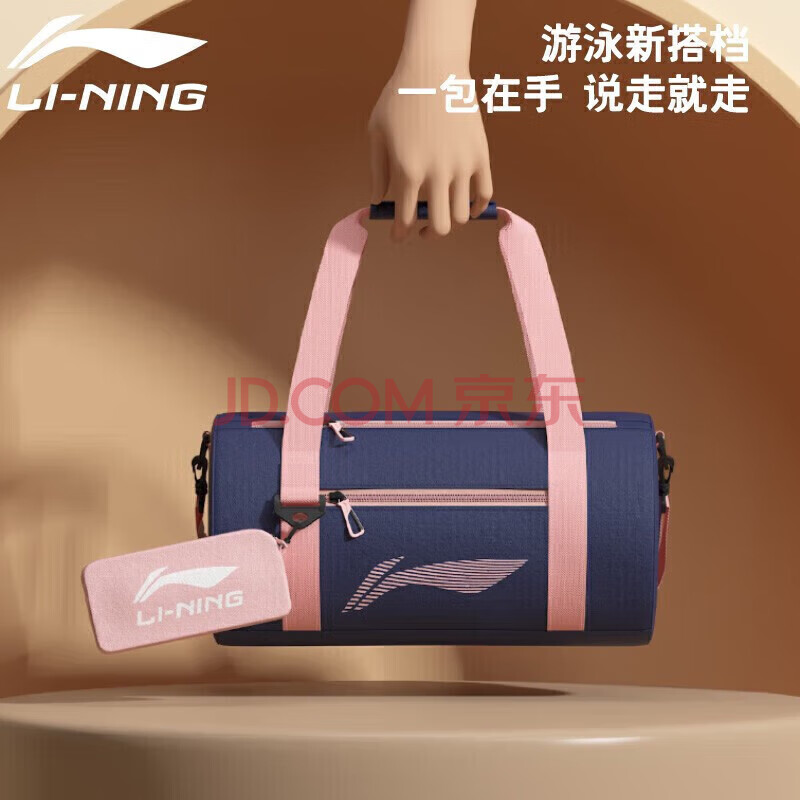 商品相册:李宁(LI-NING)游泳包干湿分离收纳包大容量旅行斜跨手提包男女多功能泳包蓝粉第