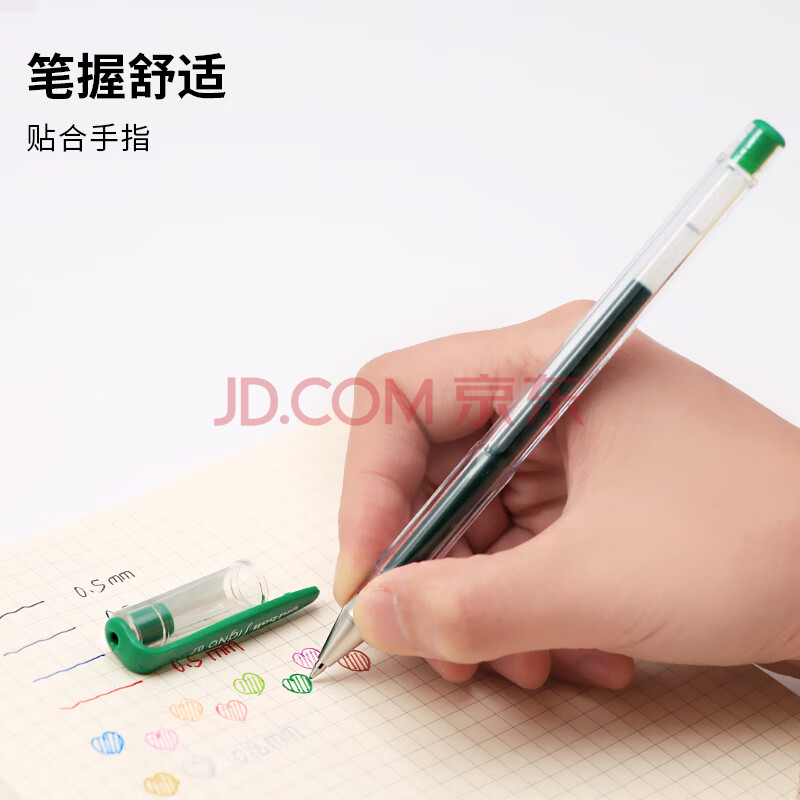 商品相册:uni三菱UM-100彩色中性笔签字笔 0.7mm学生办公防漏墨啫喱笔考试笔 绿色 12支/盒第