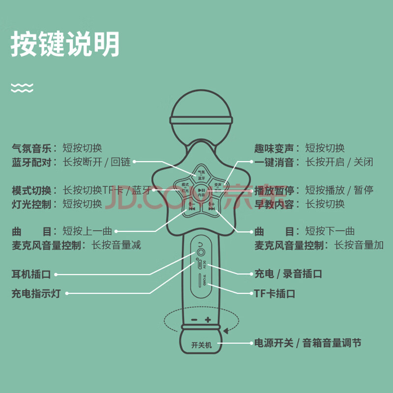 商品相册:OTIC儿童早教麦克风生日礼物露营无线蓝牙话筒音响一体式K歌宝手机专用无线家庭KTV 童趣蓝第