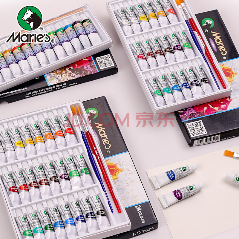 商品相册:马利(Marie's)水粉颜料盒装18色5ml带画笔 学生初学者水粉画颜料套装 写生易清洗无异味儿童色彩颜料7618第