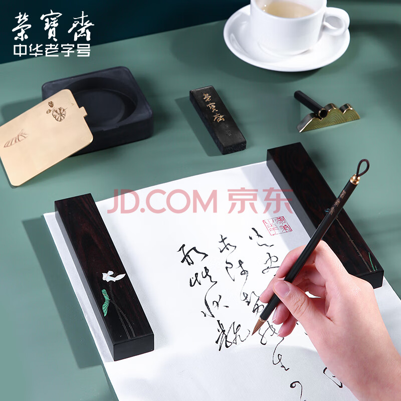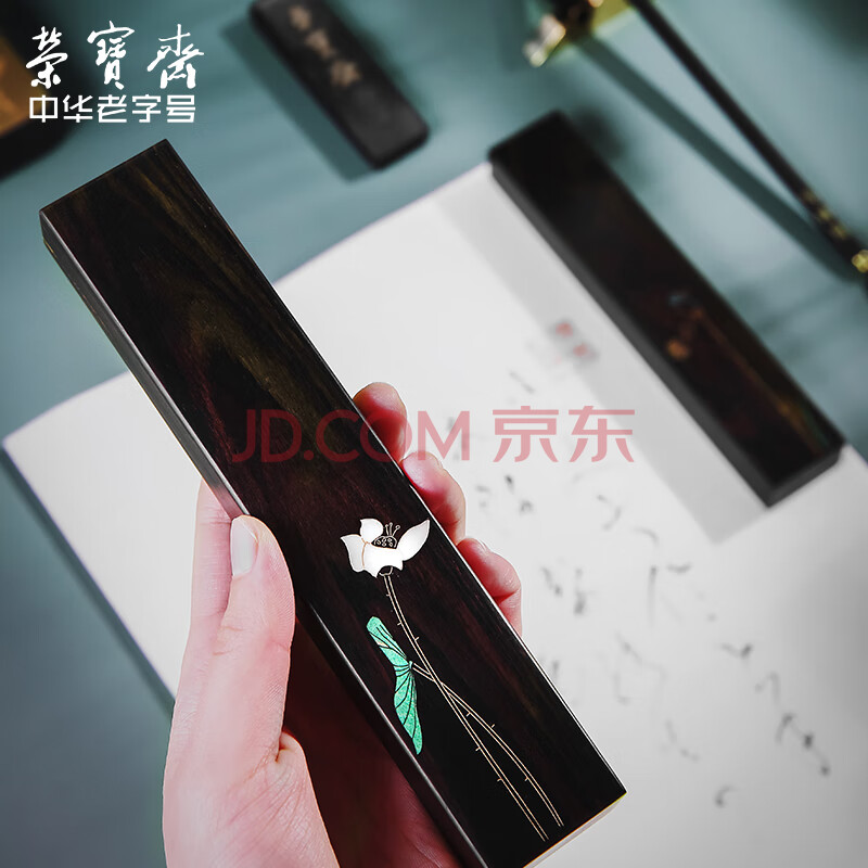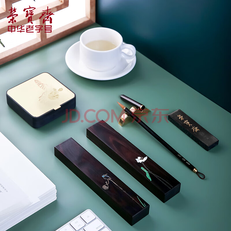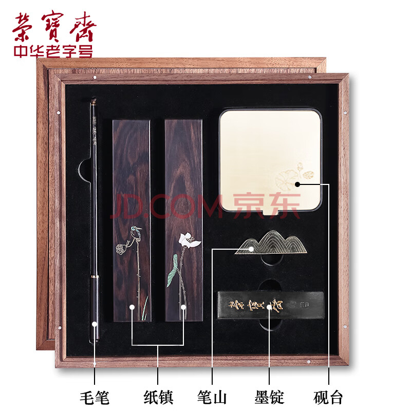 商品相册:荣宝斋 文房四宝套装 毛笔墨纸砚全套 书法专用成人初学者入门 高档书法收藏精品礼盒 荷塘流翠第