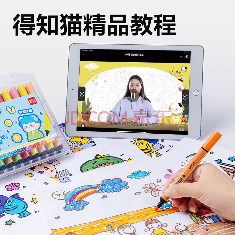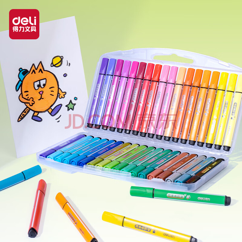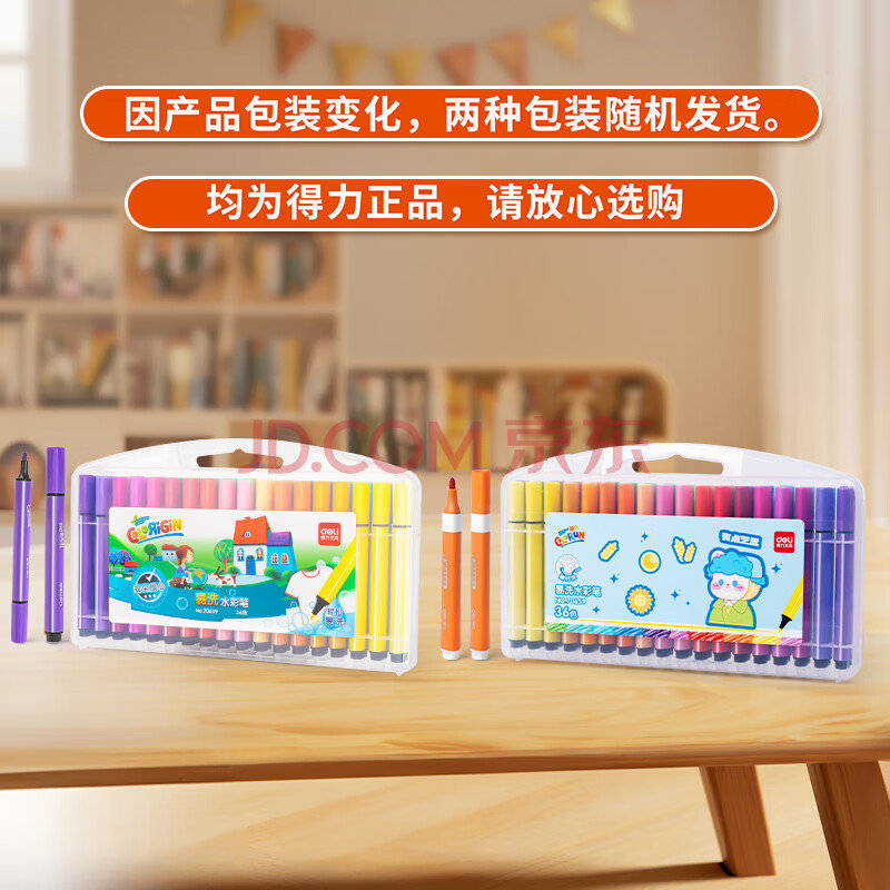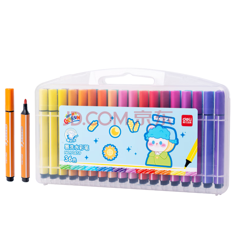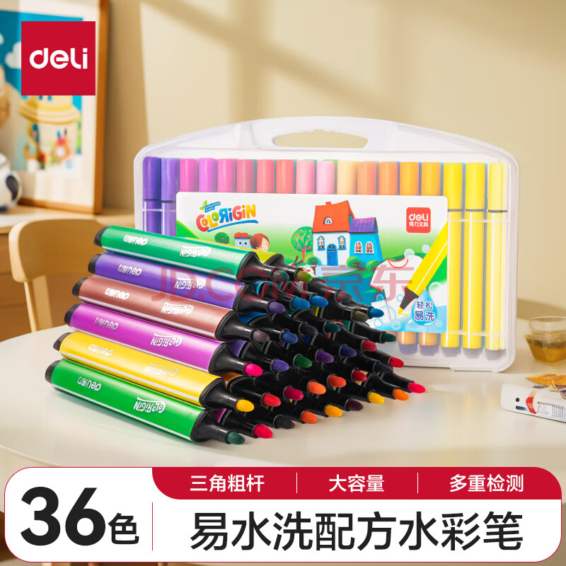 商品相册:得力(deli)易可洗水彩笔36色绘画勾线涂色颜色画材粗三角杆36色/盒女孩儿童水彩笔第