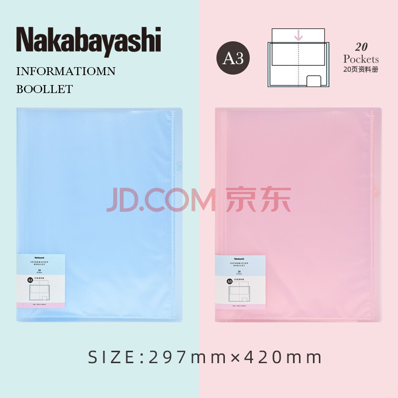 商品相册:仲林(Nakabayashi)A3插页学生试卷袋文件夹资料册收纳册海报奖状收集册 20页 NBTP-001B 蓝色第