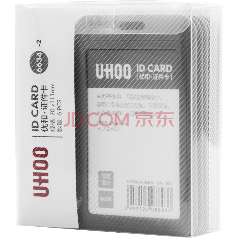 商品相册:优和(UHOO) 商务证件卡套 竖式 6个卡套+6根挂绳/盒 员工胸牌厂牌工作证 深灰 6634第