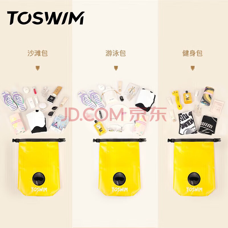 商品相册:TOSWIM拓胜游泳包干湿分离男女防水收纳包双肩背包健身运动包 透明黄蛟第