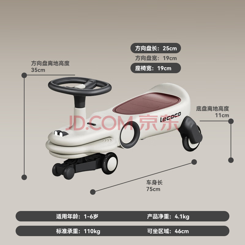 商品相册:乐卡(Lecoco)扭扭车1-3岁防侧翻摇摇车加长车身儿童车声光款 费格第
