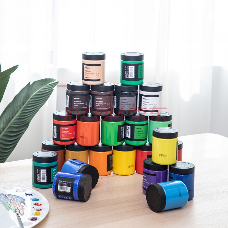 商品相册:得力(deli)丙烯颜料300ml大容量桔红墙绘手绘DIY画画、大瓶美术绘画色彩73875美育工具第