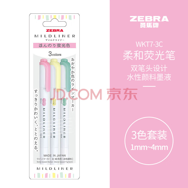 商品相册:斑马牌 (ZEBRA)双头柔和荧光笔 WKT7 3色套装 mildliner系列单色划线记号笔 学生标记笔 WKT7-3C第