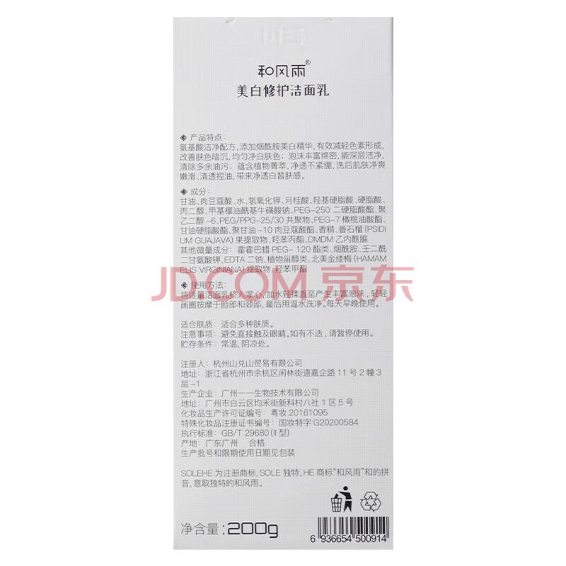 商品相册:和风雨(Hefengyu)男士美白洗面奶200g 除螨控油祛痘去黑头洁面乳保湿护肤节日礼物第