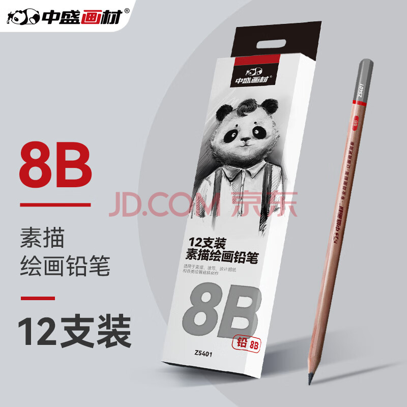 商品相册:中盛画材8B铅笔素描学生考试专用绘画图写字铅笔六角笔杆12支/盒美术写生第