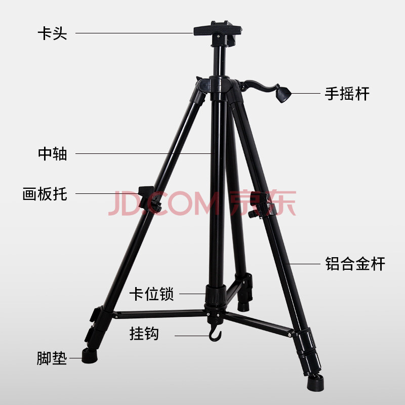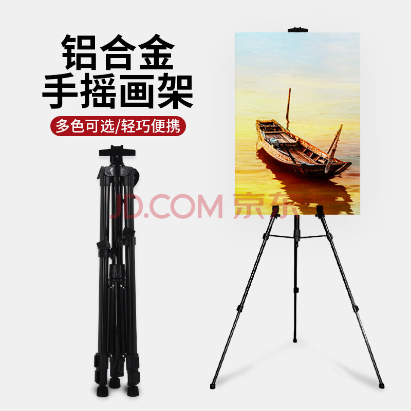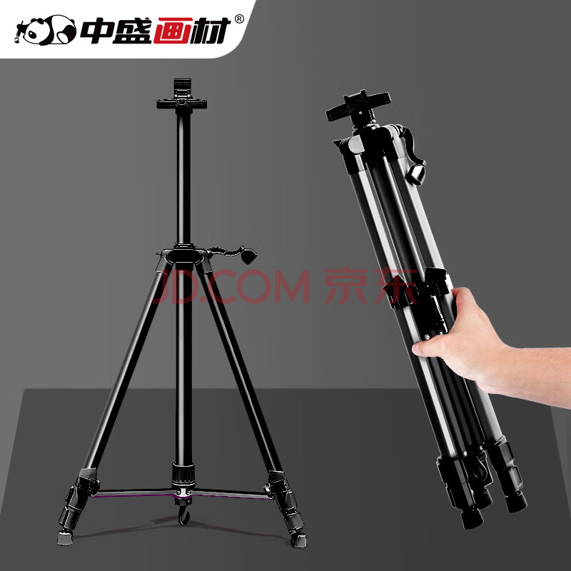 商品相册:中盛画材黑色金属画架画板套装折叠多功能落地画架子支架式便携手摇画架素描套装成人学生画架美术写生第
