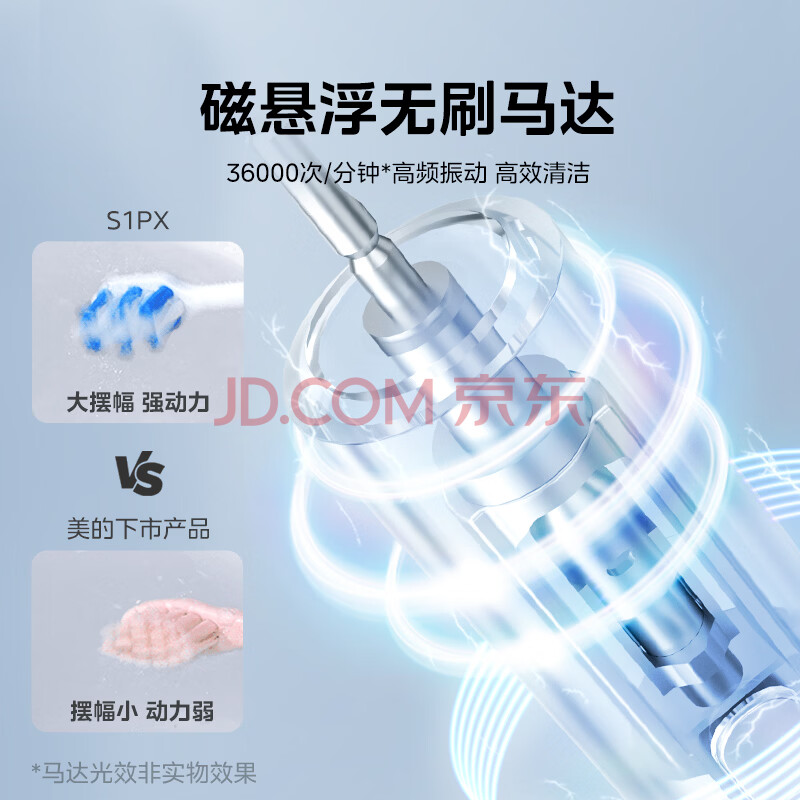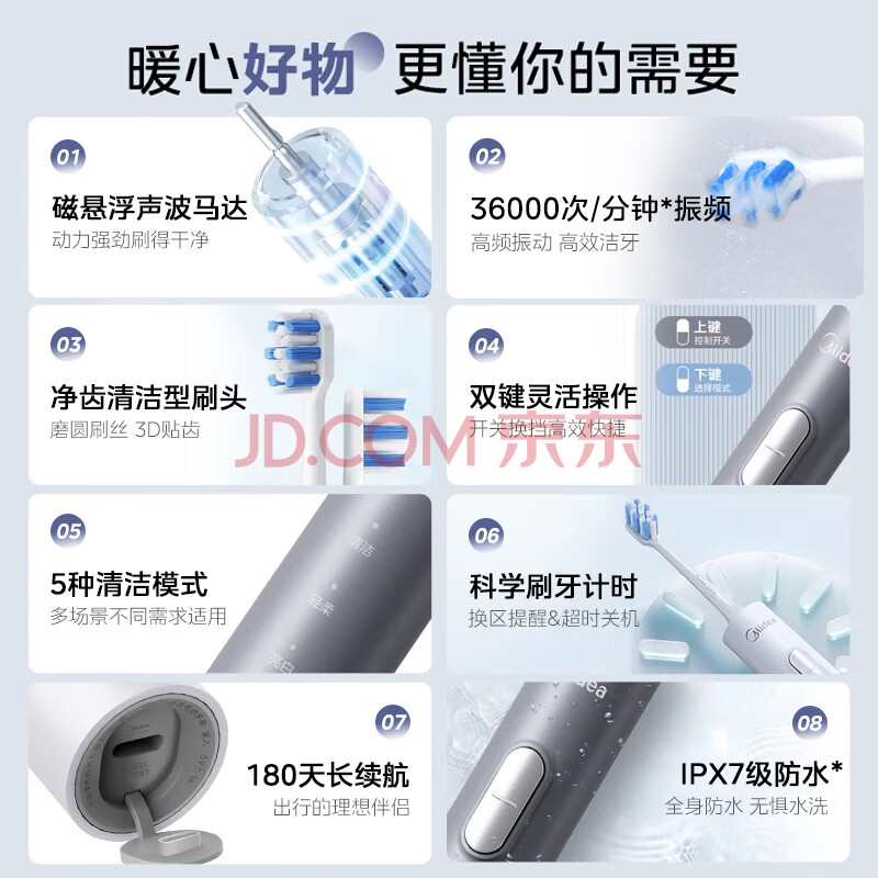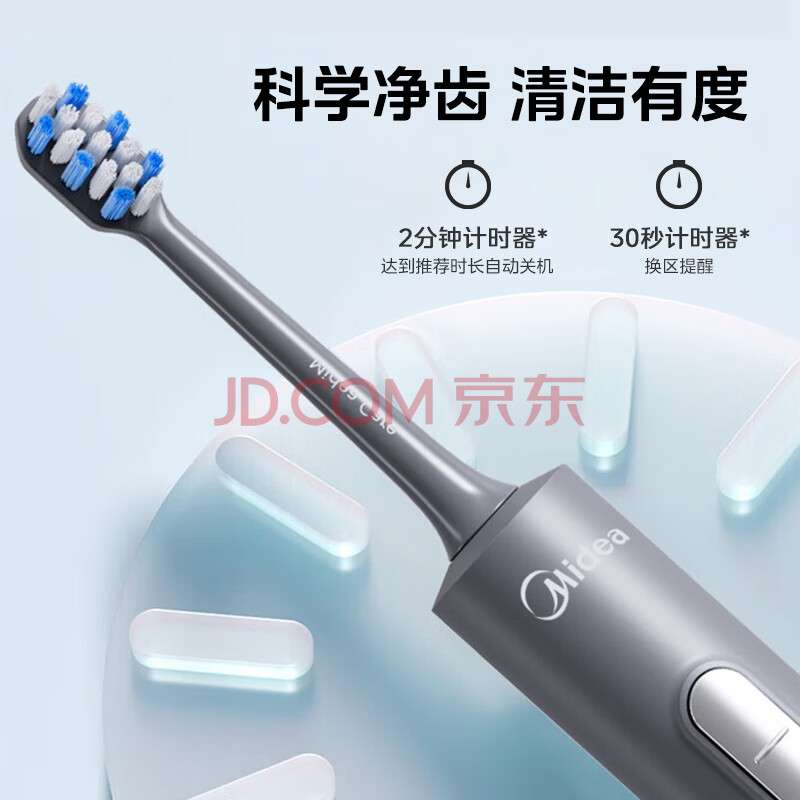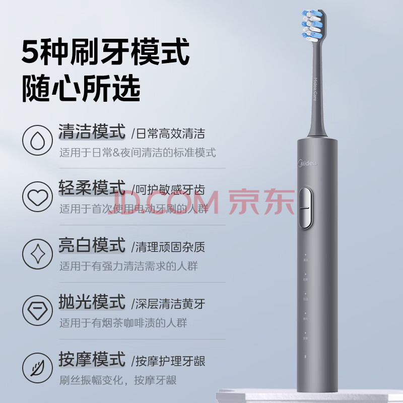 商品相册:美的(Midea)电动牙刷S1PX星空灰成人/学生便携180天续航5种模式磁悬浮声波马达清洁男女情侣生日节日礼物推荐第