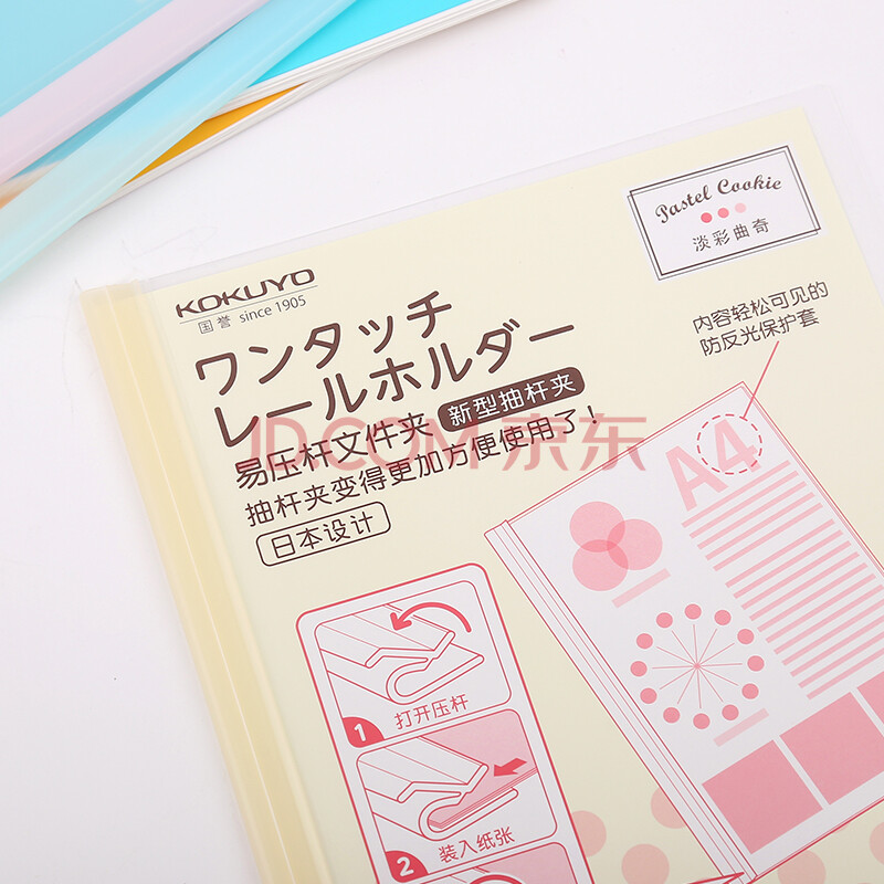 商品相册:国誉(KOKUYO)A4抽杆文件夹拉杆夹淡彩曲奇学生办公易压杆抽杆夹拉杆夹 粉/蓝/黄各1个 WSG-FUC760MX第