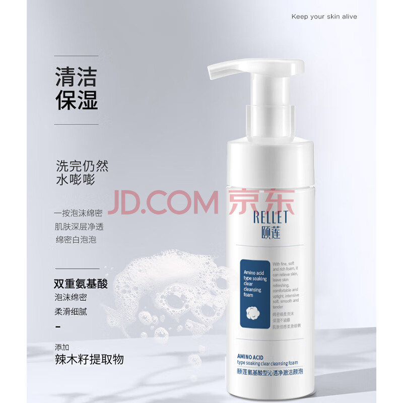 商品相册:颐莲(RELLET)氨基酸洁颜泡 洗面奶洁面慕斯清洁保湿温和150ml送女生礼物第