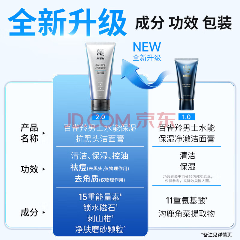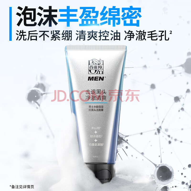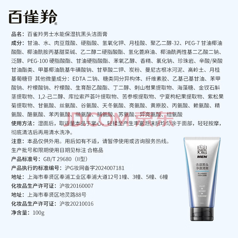 商品相册:百雀羚【直播专属】男士洗面奶水能保湿洁面膏100g控油护肤送男友第