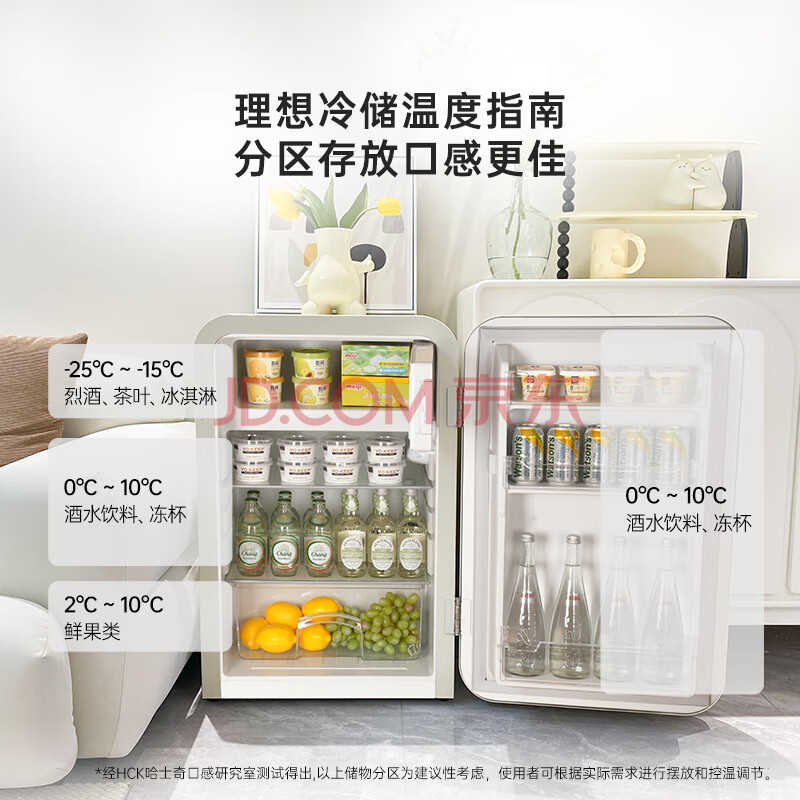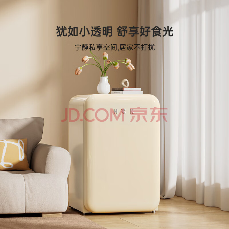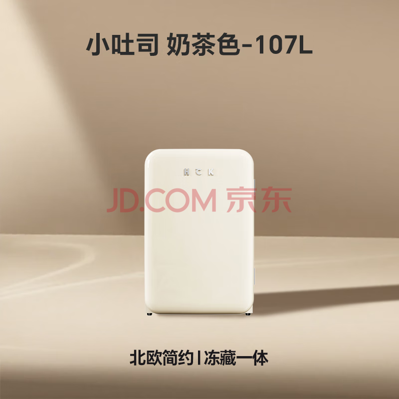 商品相册:HCK哈士奇小吐司107升单门复古小冰箱奶茶色节能纤薄家用客厅办公室冷藏冷冻一体BC-130RDC第