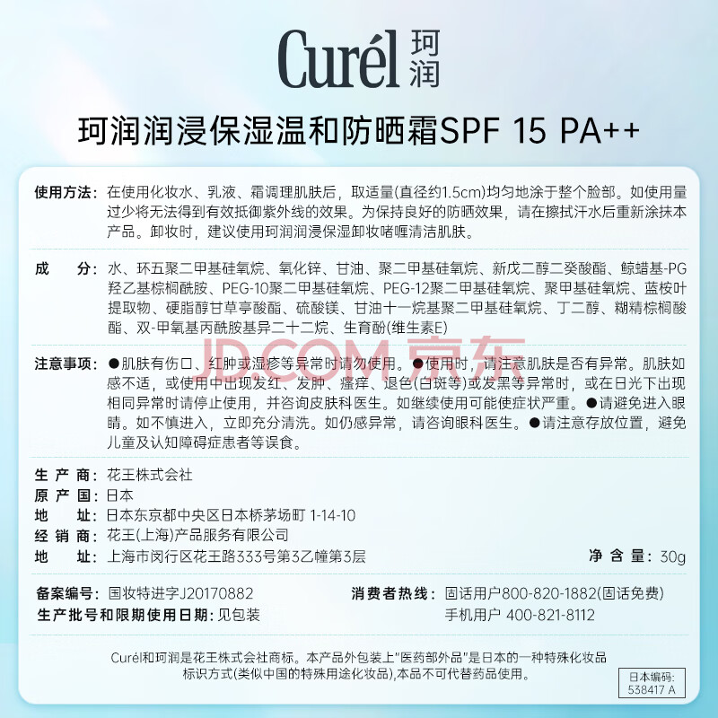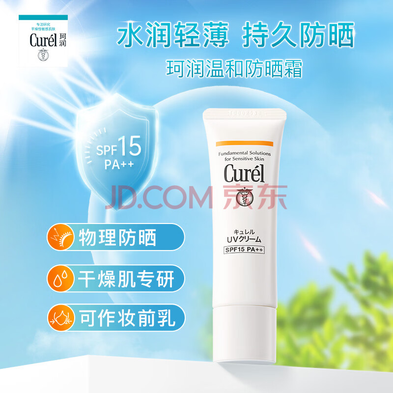 商品相册:珂润(Curel)保湿温和防晒霜30g SPF15 PA++ 户外出游敏感肌男女士进口护肤品第