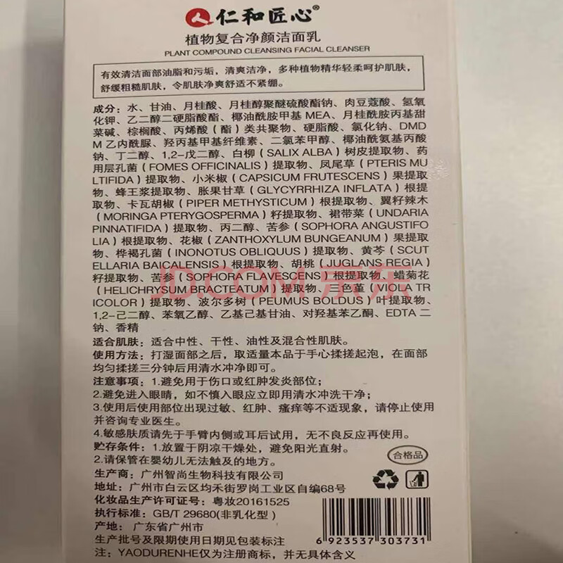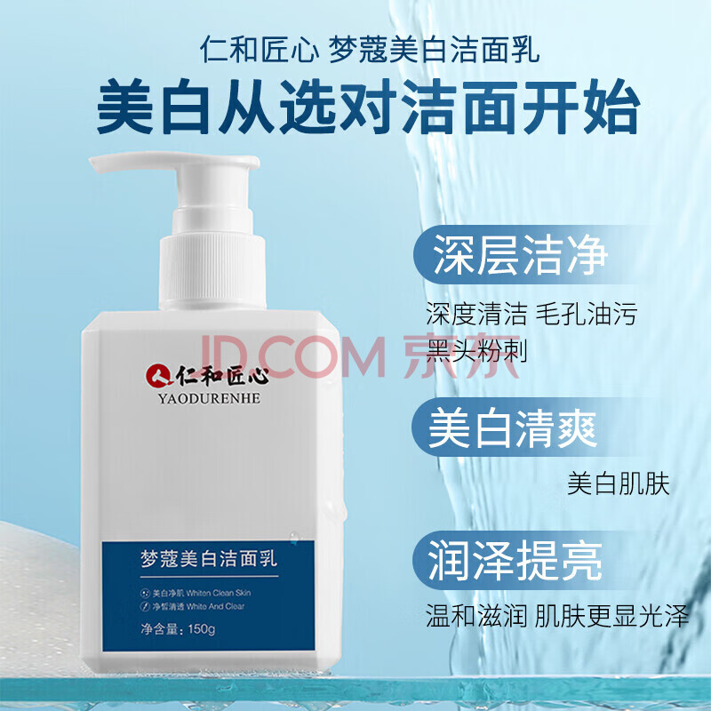 商品相册:仁和匠心洗面奶美白祛斑除螨男士提亮肤色深层清洁毛孔黑头粉刺氨基酸2瓶第