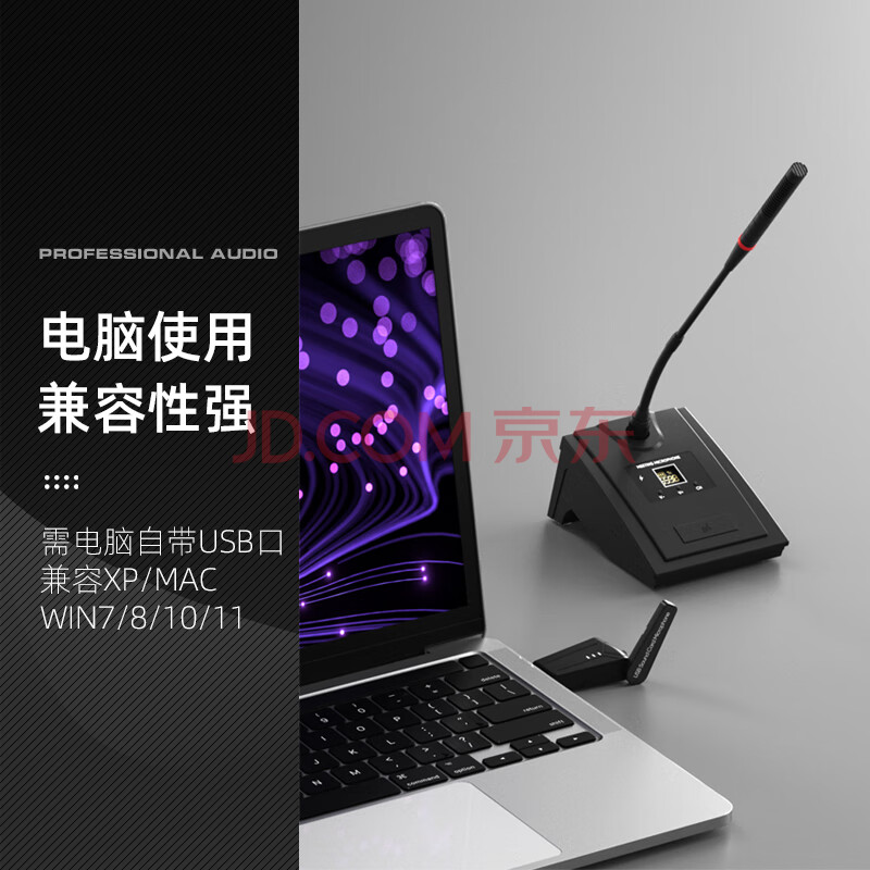 商品相册:得普声USB无线麦克风 电脑笔记本视频会议直播教学钉钉腾讯会议网课演讲鹅颈充电话筒调频 一拖二 QU7第