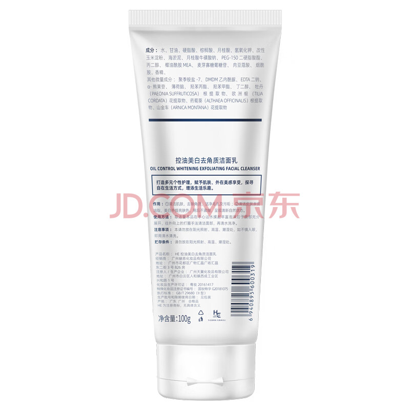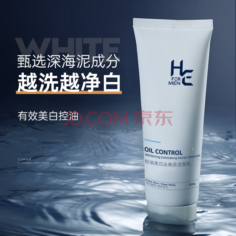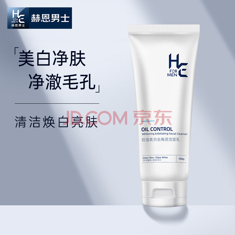 商品相册:赫恩(H&E)男士控油美白去角质洗面奶男100g*1支清洁黑头 淡化痘印第