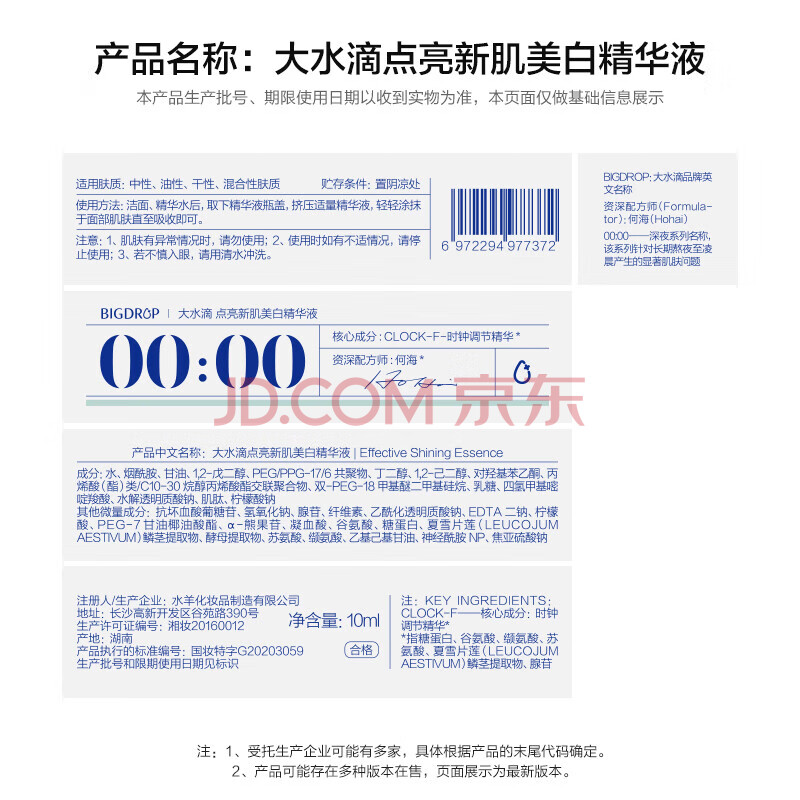 商品相册:大水滴0点熬夜美白精华5%浓度烟酰胺提亮淡化暗沉补水保湿修护护肤品第