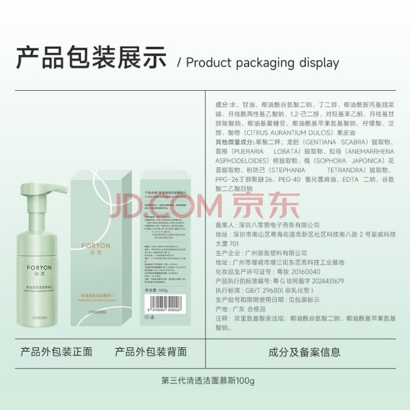 商品相册:肤漾(Foryon)氨基酸洗面奶男女控油深层清洁油皮敏感肌洁面慕斯泡沫100g*3第