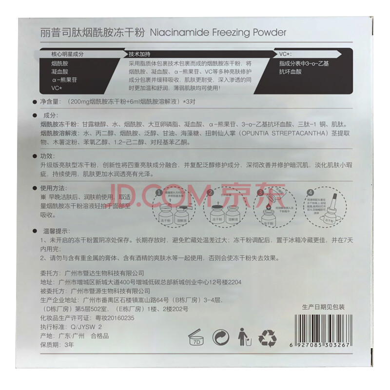 商品相册:丽普司肽(lipostides)烟酰胺冻干粉立体紧致亮肤改善肌肤干燥面部安瓶精华18ml送女友第