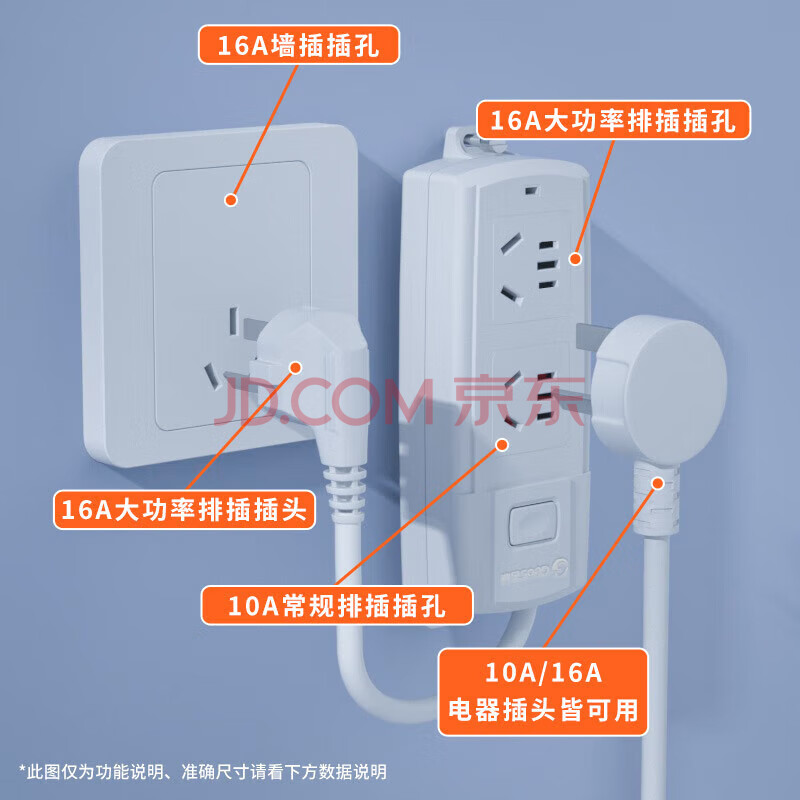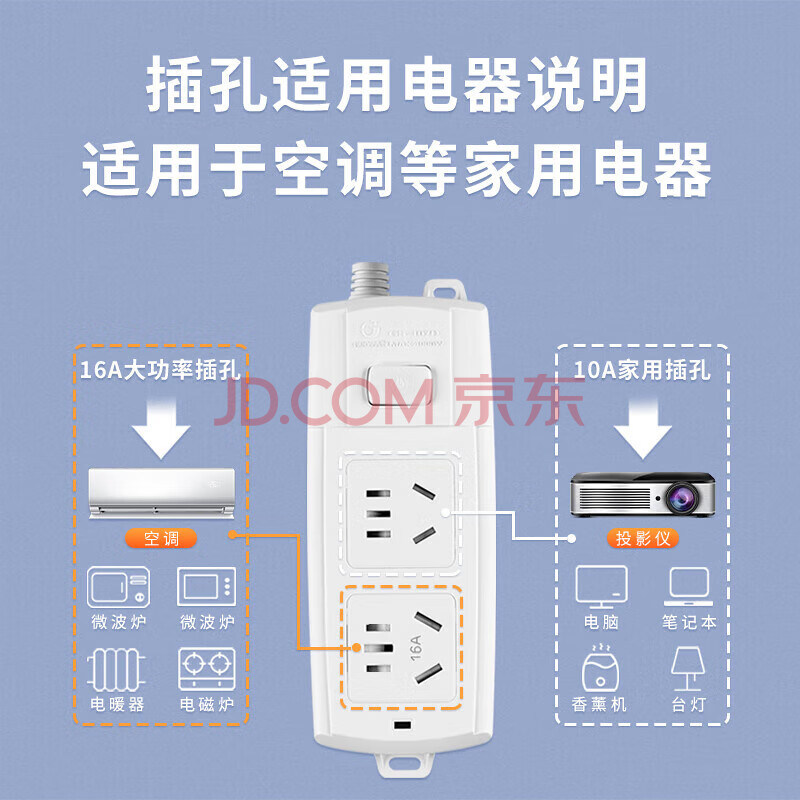 商品相册:吉顺16a插座转10a排插线板大功率插排拖接线板空调热水器电源延长线16安转10安+16安 1.8米第