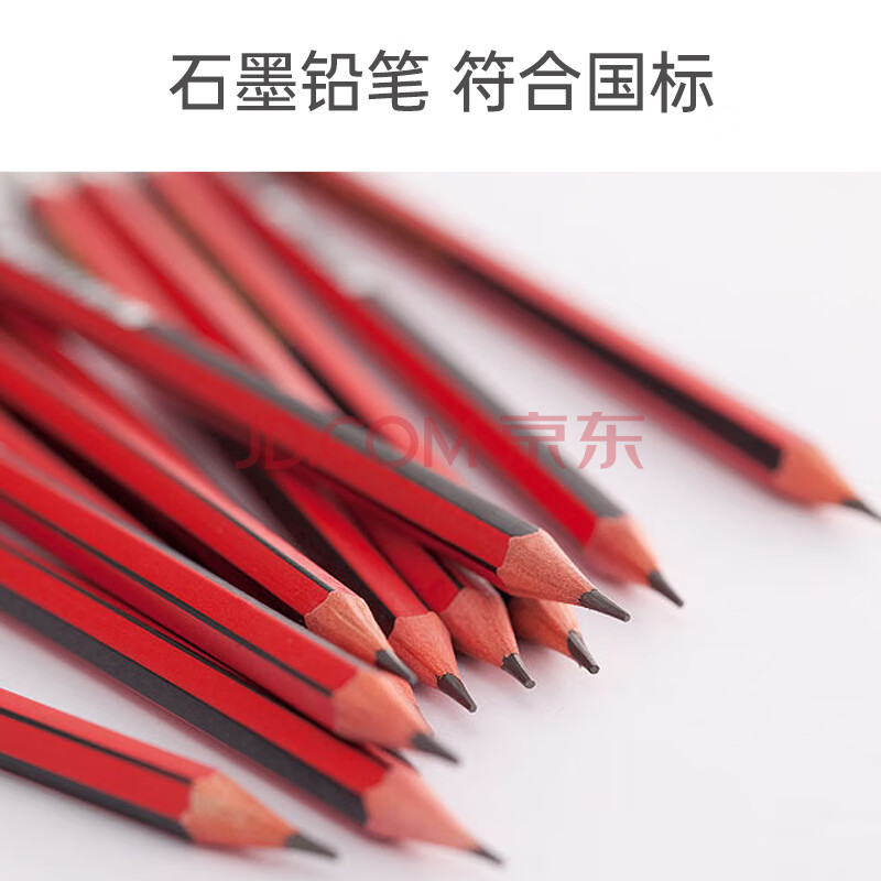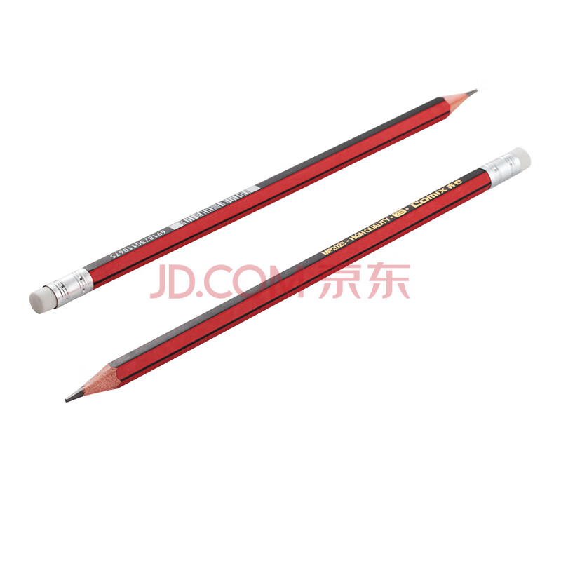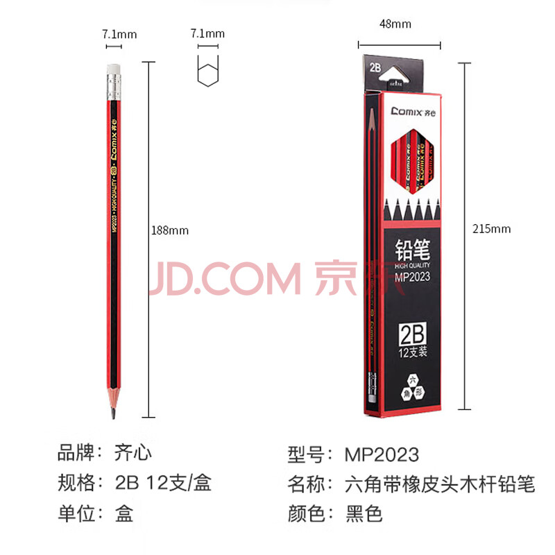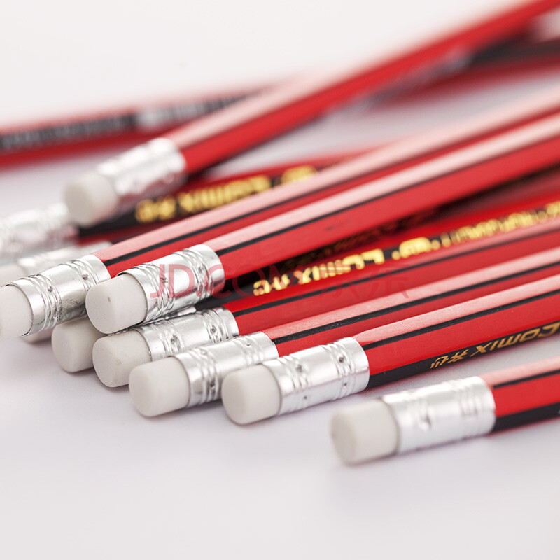 商品相册:齐心2B铅笔带橡皮头红黑抽条六角木杆铅笔/学生铅笔 12支/盒MP2023第