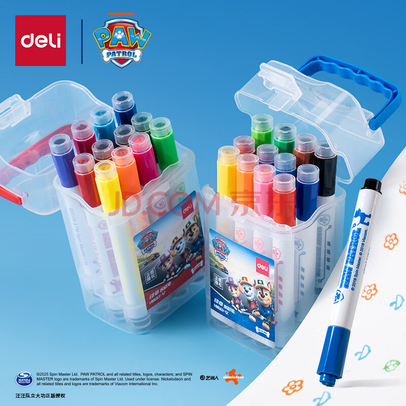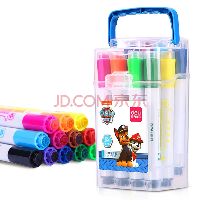 商品相册:得力(deli)12色可水洗印章头汪汪队立大功学生水彩笔儿童绘画笔可手提绘画涂鸦王子蓝水彩笔第