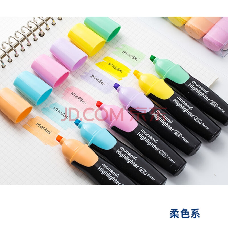 商品相册:【开学必备】慕那美(monami)柔和色荧光笔学生用方头重点标记笔记号笔手账笔 4色套装06020Z04-P第