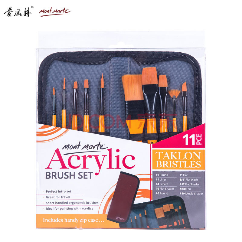 商品相册:蒙玛特(Mont Marte)水彩画笔10支装 水彩颜料画画笔美术勾线笔儿童学生绘画笔涂鸦排笔笔刷套装BMHS0032美术写生第