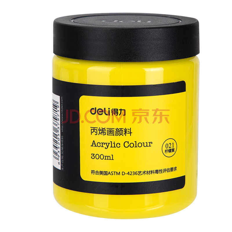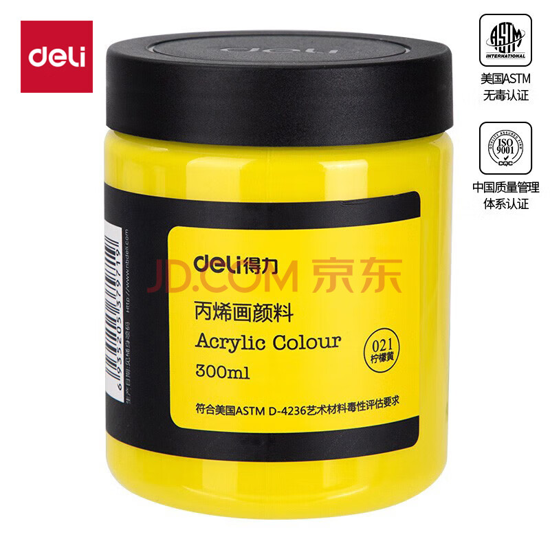 商品相册:得力(deli)柠檬黄丙烯颜料300ml大容量墙绘手绘DIY画画丙烯画大桶装大瓶美术绘画美育工具第