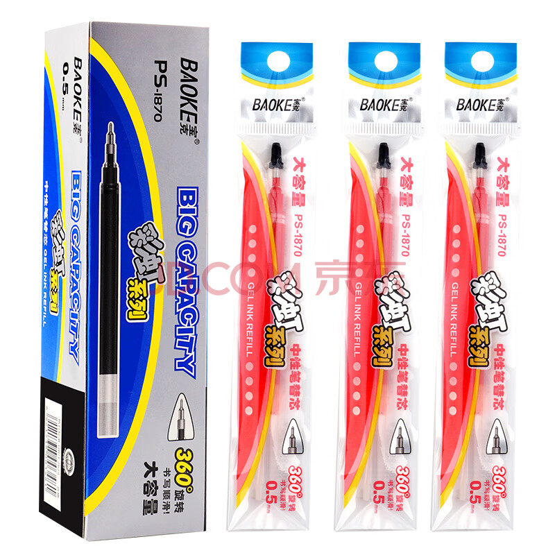 商品相册:宝克(BAOKE)PS1870 0.5mm半针管大容量中性笔笔芯水笔签字笔替芯 红色 12支/盒第