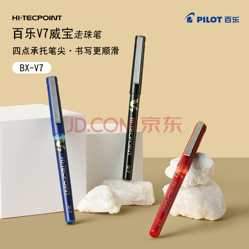 商品相册:百乐(PILOT)BX-V7蓝色中性笔0.7mm直液式走珠笔签字笔小v5学生考试刷题水笔高颜值手账标记文具 蓝色 12支装第