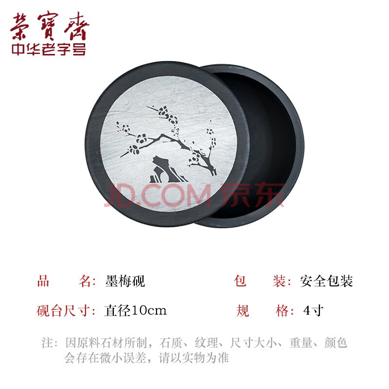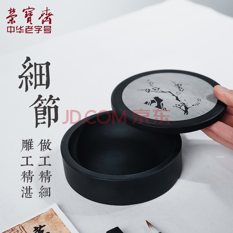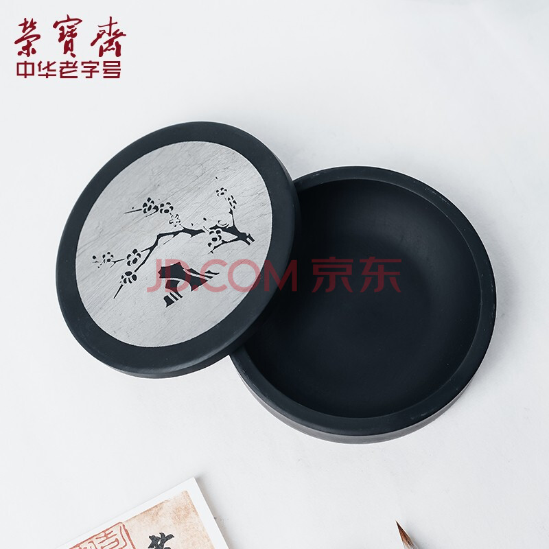 商品相册:【全网低价】荣宝斋 火锅砚台 带盖防蒸发不干墨可磨研墨条 初学者学生书法专用墨盒池 墨梅砚(4寸)第