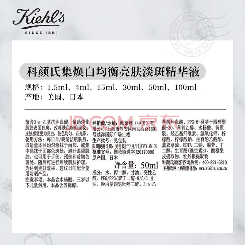 商品相册:科颜氏(Kiehl's)安白瓶淡斑精华液50ml美白紧致礼盒 生日礼物第