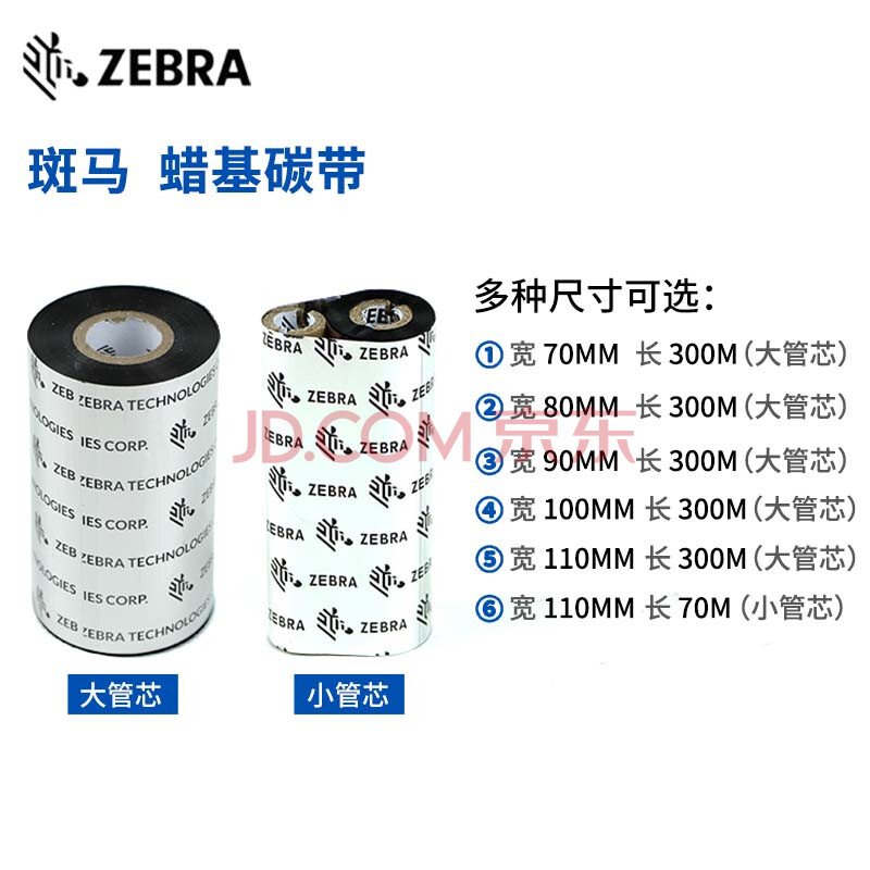商品相册:Genuine Zebra斑马腊基A1701BK碳带110MM*70M/卷 条码标签打印机 GK888T/GX430T/ZD888T/ZD421专用色带 第