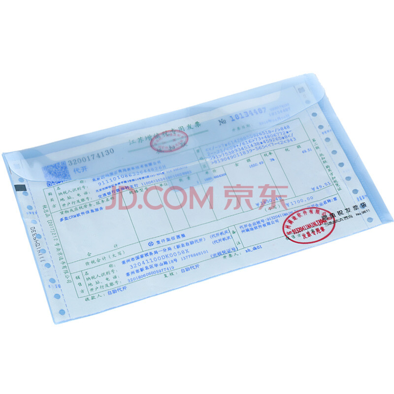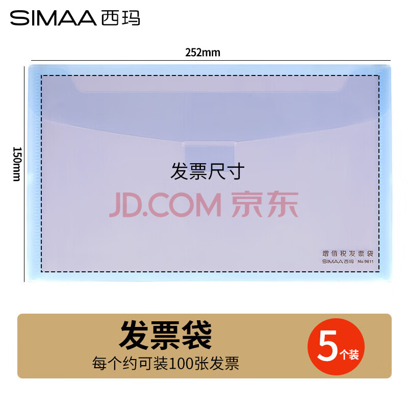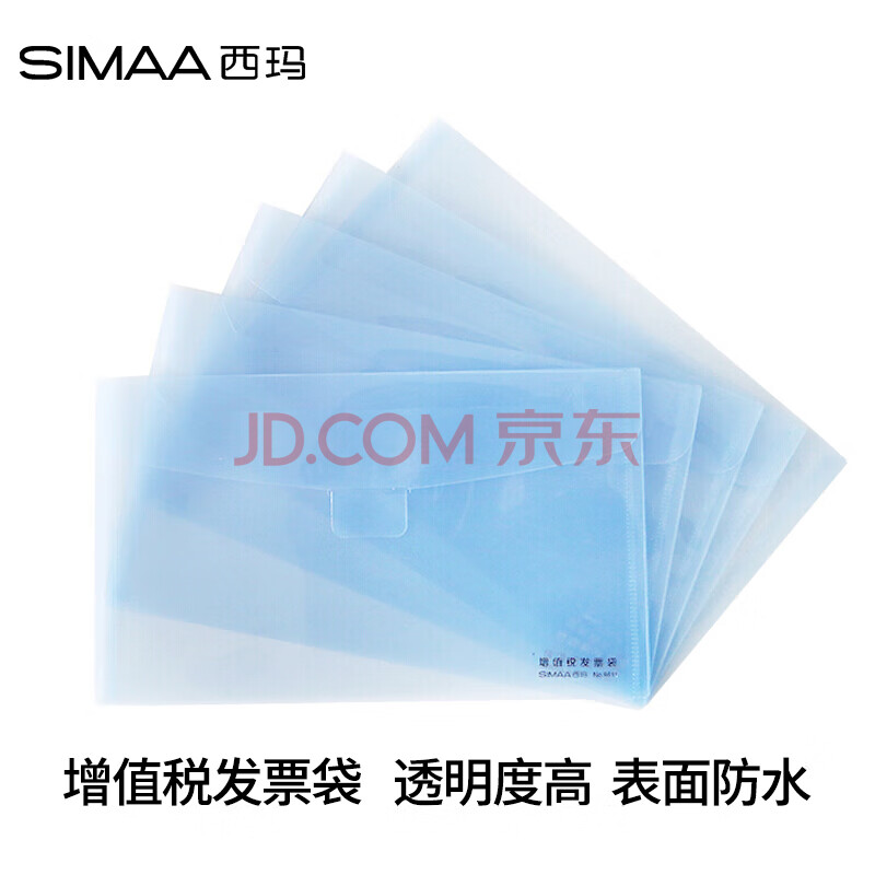 商品相册:西玛(SIMAA)增值税发票专用信封发票袋 增票牛皮纸文件袋透明防水发票套 PP材质 浅蓝色 5个装第
