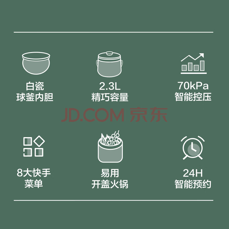 商品相册:苏泊尔(SUPOR)一人食电压力锅2.3L 陶晶球釜开盖火锅智能预约1-3人SY-23YC8062Q电饭煲高压锅第