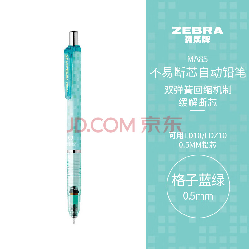 商品相册:斑马牌(ZEBRA)MA85自动铅笔DelGuard0.5mm幼儿园小学生一年级绘画活动铅笔高颜值学习文具用品 格子蓝绿杆1支第